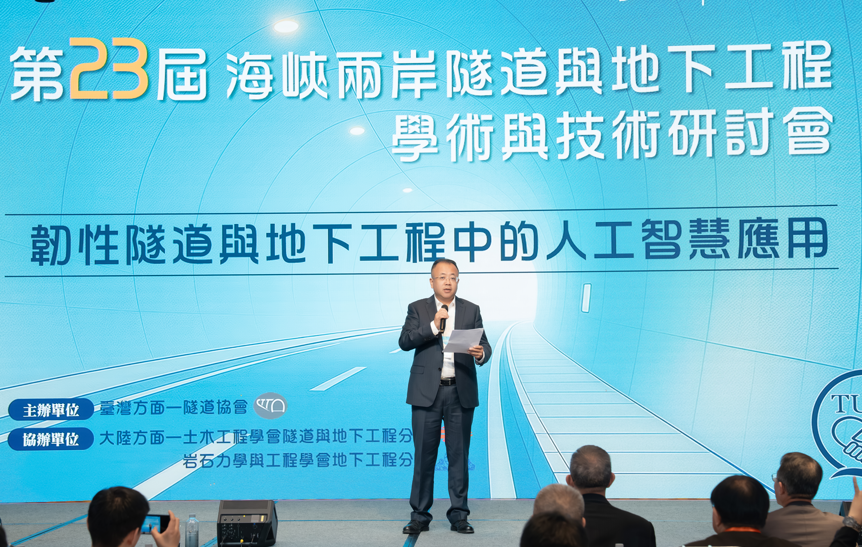 會議中安排了三場特邀報告,分別由中興工程顧問股份有限公司的賴建名協理、大陸中鐵隧道局集團有限公司的李志軍總工程師以及青島國信膠州灣第二海底隧道有限公司的李翔董事長主講,分享了隧道工程的數位轉型與挑戰。他們的報告涵蓋了「默默潛行─看見數位及永續轉型的光」、「先鋒·隧道大模型賦能工程建造技術新突破」、「青島海底隧道建設與挑戰」等主題,吸引了與會者的廣泛關注。